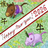 「代理」がテーマなのと 新年なので午年の代理 として描かれるであろう ウ○娘とユニコーンネタで! |