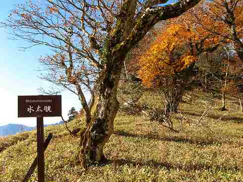 水太覗(みずぶとのぞき) 大峯奥駈道のこのあたりの稜線は気持ちよく歩けます。 水太覗にきました。怖いので覗きはしませんでしたがこの左側は切れ落ちた断崖です。 〔水太覗=9:30〕 |