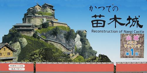かつての苗木城 これは絶景ポイントに掲げられていたもので、当時はこんな感じだったという絵ですね。 |