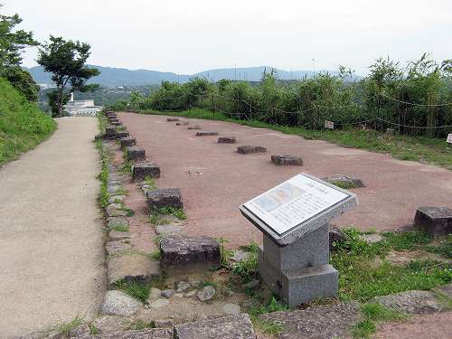 足軽長屋から見た本丸 駐車場を出てすぐのところに《足軽長屋跡 絶景ビューポイント》という案内板があったので立ち寄りました。 その絶景というのが足軽長屋から望む本丸でした。 |