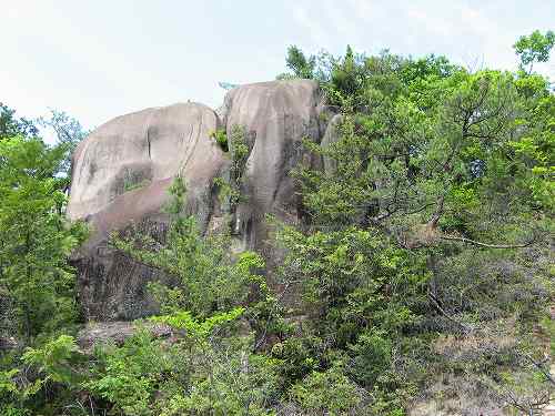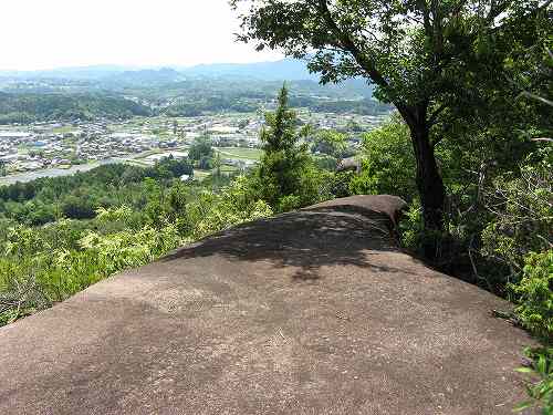 展望岩 ハンバーガー岩の少し上に展望岩がありました。 幅1~1.5m、長さ7・8mある大岩です。この下は崖なので東側の展望が開けるのです。 〔展望岩 着=11:45〕 |