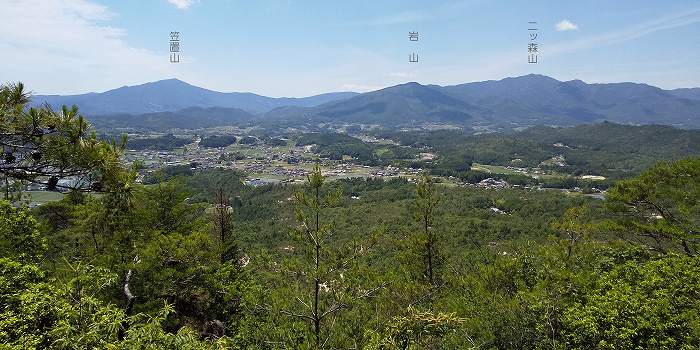 展望岩から見た笠置山 展望岩からは右端になりますが笠置山も見えました。 〔展望岩 発=12:45〕 |