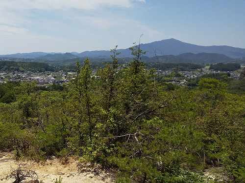 笠置山を望む このあたりまで登ってきて振り返ると展望が開けていました。西側の景色ということで、この写真は笠置山です。 |