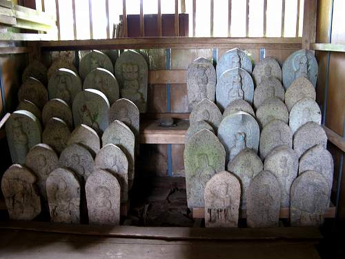 観音堂の中 観音堂の中はこんな感じ。 数えてみると43体。観音様? それとも地蔵様? |