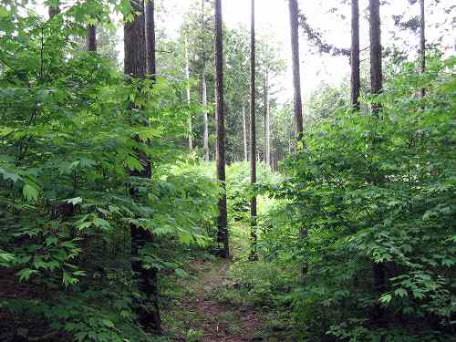 登山道 初めは急登とまでは行きませんが登り坂登山道です。 標高差で100mくらい登ってしまうと あとは緩やかな道になります。 |