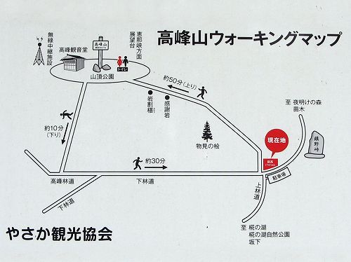 高峰山ウォーキングマップ 登山口にこんな《ウォーキングマップ》がありました。 反時計回りにこの絵のように歩いてくることにして出発します。 |