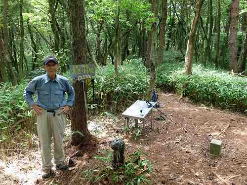 義呂利松三角点 分岐から義呂利松三角点はすぐでした。展望はありませんがここで休憩。エネルギーを補給して次の天狗岩へ向かいます。 〔義呂利松三角点=13:40~13:55〕 |