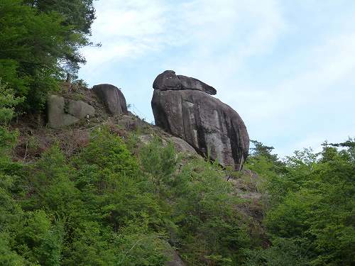 天狗岩 巨岩が2つ、これが天狗岩か。 うさぎ岩はなまえの通りだが、これは天狗には見えないよなー。 |