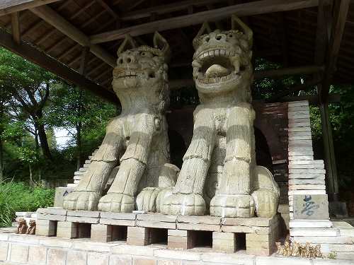 世界一のこま犬 次がギネス認定の世界一大きい美濃焼の狛犬。 高さ3m、確かにでかい。 〔世界一のこま犬=15:25〕 |