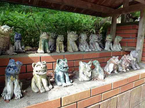 八王子神社のこま犬 八王子神社はこま犬の神社です。奉紊されたこま犬がたくさん祀られていました。 この地では 江戸中期以降からたくさん作られ奉紊された陶器製の狛犬が参道に並んでいます。 |