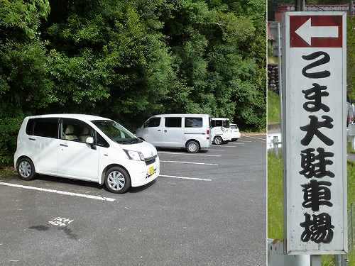 駐車場に戻る 世界一の茶壷とこま犬を見て義呂利松三角点ハイキングは終了。駐車場まで戻ってきました。こまいぬ駐車場として10台くらい駐車できるところです。 〔八王子神社駐車場 着=15:3 0〕 |