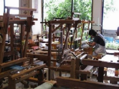 6.みね屋工房で。機織り体験も出来るようです。機織り中をパチッ。