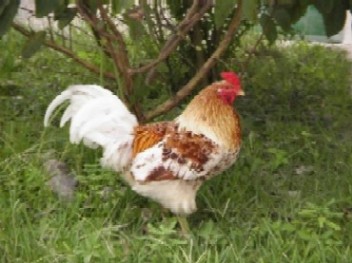 9.「トミーのパン」の前にいたニワトリ。卵産むのかな?