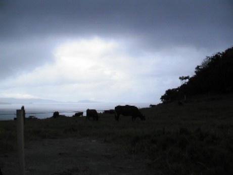 道をずーっと進んでゆく。海沿いになったり、山の中を走ったり、牛がいたり、