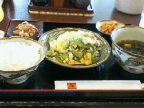 1.首里城のレストランで食べた「ゴーヤーチャンプル定食」。今回の旅では何回もゴーヤーチャンプル食べました!