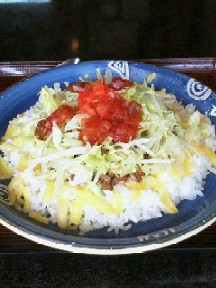 6.竹富島で食べた「タコライス」。タバスコをかけて全部混ぜていただきます!うま〜い!