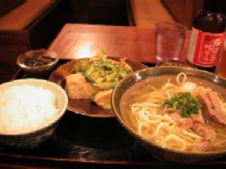 8.石垣島で食べた「ゴーヤーチャンプルと八重山そばセット」。添えてあったもずく酢も絶品でした!