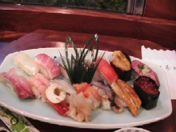 13.石垣島で食べた寿司。「極上にぎり」を注文。上段一番右端が、追加で頼んだ「石垣牛のにぎり」。超うま!!