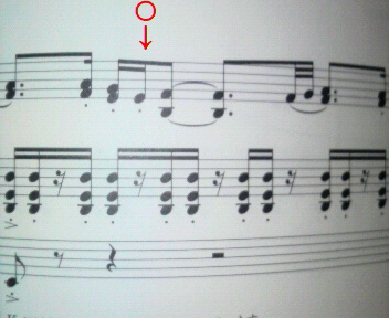 ◆p.30 1段目1小節目 2拍目終わりから3拍目にかけて