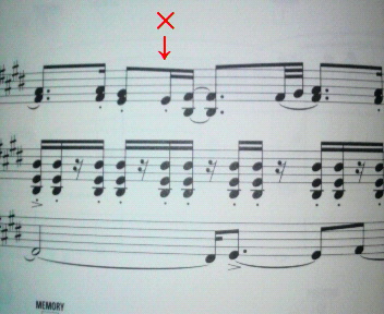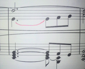 P35 3段目2小節目の右手,2拍目裏と3拍目アタマ