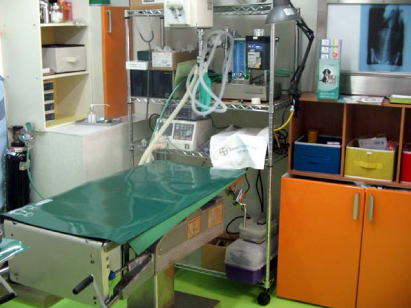 必要な機材は、しっかりあります。 レントゲン、超音波、麻酔器、心電計、血球計算機 |