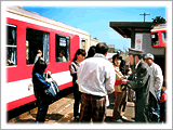 <開業時「味浜駅」としてスタート。昭和2年(1927)10月に、西洋風の駅舎を建て、駅名を「西一色」に改める。通りから一歩奥に入った場所にあり、静かな立地。狭い入口に見合わず、長さのあるプラットホーム。「一色高校」の最寄り駅であった西一色駅、どんな思い出を残すのだろう> 吉良吉田へ向けて出発したLEカーが幡豆郡・一色町へと入り、最初の駅である「西一色駅」。 大正15年(1926)の開業時には、「味浜駅」としてスタートしたが、昭和2年(1927)10月25日に新しい駅舎が建てられたのを受けて、駅名も今日知られる「西一色駅」とした。 その当時建った駅舎は、西洋風のアーチと柱を持つ木造建造物で、小さいながらも大変美しい外観を成していたが、惜しくも昭和61年(1986)に取り壊されてしまう。 駅前の飲食店「梅川屋」の東隣、駐車場になっている場所に南を向いて建っていた。 西一色駅のプラットホームに降り立てば、意外にホームが長いことに気付く。平成2年(1990)にLEカーが導入される以前の光景を想像させる。 「一色高校」の最寄り駅になっていることから、朝夕の登下校時間には、多くの学生が乗降したことだろう。
