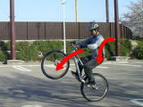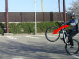 1) 漕ぎ上げまずは漕ぎ上げのアプローチから… 前進するつもりでしたら、着地時にフロントが落ちていくように少しだけ前加重にします。 当然、着地時はリアブレーキをロックします。 |