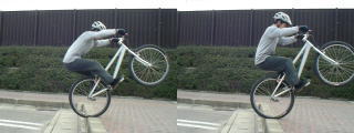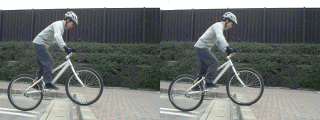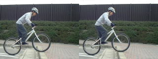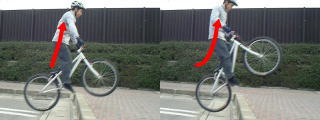 こうしてGIFアニメで動きを並べて見てみると、自転車の軌道も違いますね。 普通の漕ぎ上げでは弧を描くように着地していますが、こちらは直線的です。どちらが良いとか、どんな時に向いているとかは私もあまり知らないのですが「とりあえず別のやり方もありますよ」ってところで… |