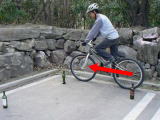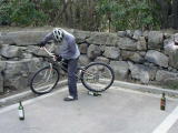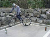 こんなページにGIFアニメなんて必要ないかな〜? なんて思いましたが一応、恒例ってことで…これを見ると解るのですが、何気にペダルがボトルに当たらないように避けていますね。 同じようなセクションでも、石コロだったらこんな事をしなくてもクリアできそうです。 |