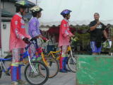 実は主役の3人以外にもステージで自転車に乗って見せた人が3人居ます。 古川親と飛里親、そして私(いそし)です。 オジサンライダーの基本テクニックショーといったところでしょうか? おかげで御二人の画像が撮影できませんでしたがしかたがありません。 (新規専属女性カメラマン募集中) しかしこの日は異常に暑かったです。 デモも良いですがもう少し涼しい所で見たいものです。 |