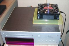 ということで強制空冷装置の開発に着手しました(^^ゞ。と大袈裟なことをいってもたいしたことじゃありません。OA機器用の冷却ファンを使って天板のスリットから内部の熱を強制排気しようってことです。