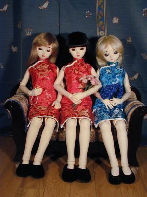 6月に入ったことでもあるし、3人共に衣替えさせました。 Tomoeさん作のショートチャイナ服でお揃いです。 ラブチェアーって3人座れるんですねぇ。