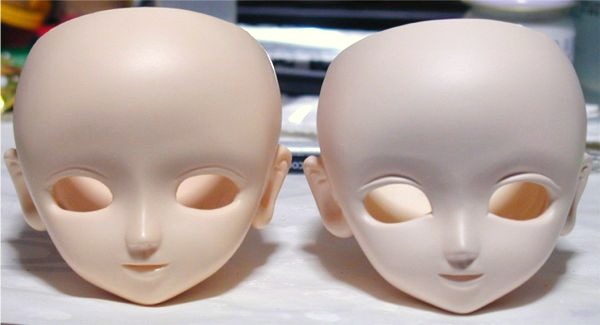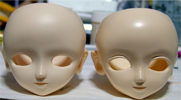 新世紀は鈴華(マイりおネーム)のエステで始まるのであった。 右手(ひけにより交換予定)を除き、ボディはコーティング終了しました。 今回は顔の整形にもチャレンジしています。 でもいきなりオリジナルの顔を整形する度胸はないのでコピーヘッドでトライです。 整形は目の輪郭で目頭をはっきりとし、上側の内側よりと下側の外側よりを広げ、垂れ目度合いを大きくしてます(さらに目が大きい娘になりますね^_^;)。 鼻筋も若干落とし、心持ち鼻も小さくしてます。 後、目蓋のライン上側を削りこみ立体的にしてるくらいかな。眉毛がないし、色もついてないので最終的な印象がどうなるか自分でもわかりません(^^ゞ。さてどんな子になるかなぁ〜。