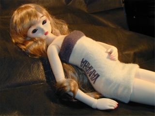 | 第3弾はボディコンです^^;。 まあこれは、スキー用のハイソックスをちょいと加工したものです。単純な筒ですので簡単にできますよ。撮影はライトを使い、室内撮影です。最近、髪が荒れてきてるのが悩みの種なんですよねぇ。 | |