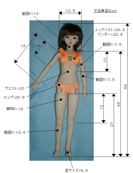 これは服を自作される方の参考になればと思い、愛華をモデルに身体の採寸をしたデータです。 |