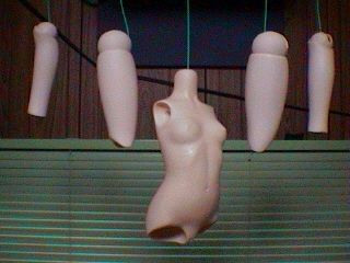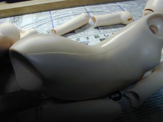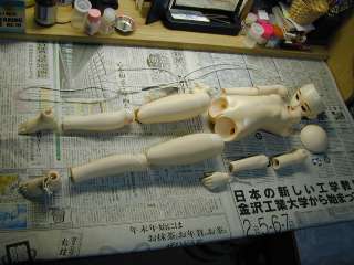 左はパーティングラインを消し終わったボディです。やるだけの価値はあると思いますよ! パーティングライン消しの時に各関節の球体部分と受け面については#120で荒らしています。これをやっておくと関節の固定がしやすくなります。特に首と頭の受け面はやっておかないとちょっとしたことでふにゃっとエクソシスト状態^^;になりやすいですからね。 |
