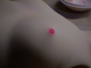 一番、悩んだ乳首の仕上げです。私は今回、上記の蛍光ピンクと原色のピンクを混ぜて、かなり薄くした状態で周辺からぼかすように面相筆で塗ってみました。 まあ、50%くらいの出来でしょうか。