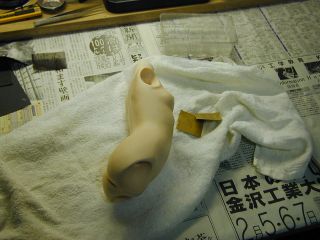 肌の最終仕上げとして、プラスティック用コンパウンドで磨いてあげます。(顔だけはパーティングラインもないので、一切手を加えていません) ちょっと、写真で見るとボディが光ってますね。