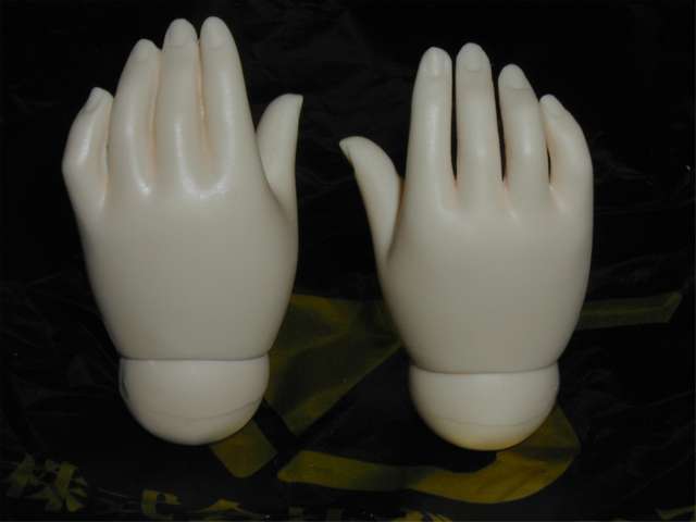 娘達のノーマルのお手々は左のようにくっついているんですよね。やっぱ、これがどうも気になって、さくらの化粧直しのときに思いきって分離してみました。結果としては大成功で、指の表現力が大幅UPなのですね(^。^)。