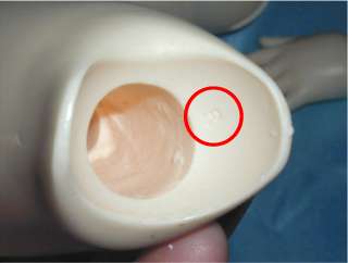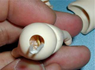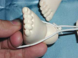 これがゴムひもと結ぶときに邪魔になったり、へたをすると、手首パーツでは腕の穴の中でひっかかって、ゴムひもの動きを邪魔したりすることがあります。 |