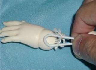 とぢらでもいいので、手首パーツを引張って、ゴムひもの結び目をだします。
