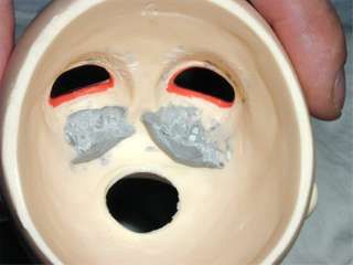 グラスアイ側のパテの状態ですね。再利用の場合はそのままに顔側のパテと同じように残しておいて、位置決めにしてもいいでしょう。