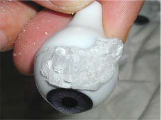 うまくいけば写真の様に下側のパテが割れて、めでたくグラスアイがはずれます。 |