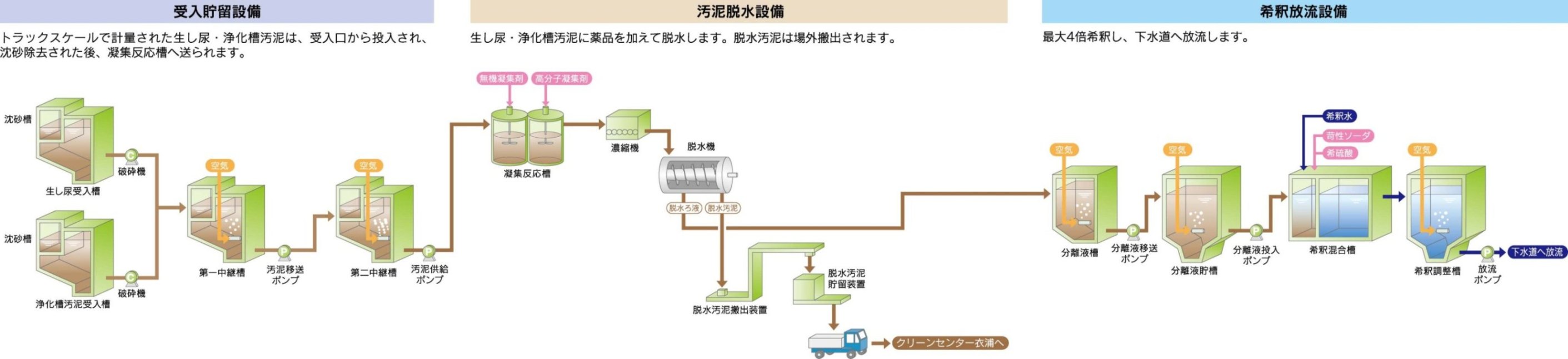 受入貯留設備・汚泥脱水設備・希釈調整設備