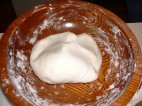 | 4 こねている時、手にベチャベチャくっついてこないくらい、耳たぶくらいの柔らかさに調節してね ベチャベチャ手にくっついてくる様なら、最初に少し残した米粉を加えて練りなおしましょう 生地の完成 |