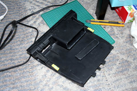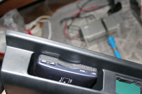 | なんとなくまっすぐ切り取らずに下のほうは残してみました。 これは、車載器の下の隙間にカードとかを入れられるようにと思っての事。 こうすれば裏に落っこちないから(たぶん) |