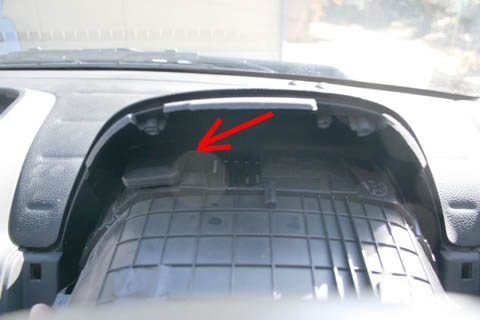 アンテナはメーター裏の矢印の部分に。 |