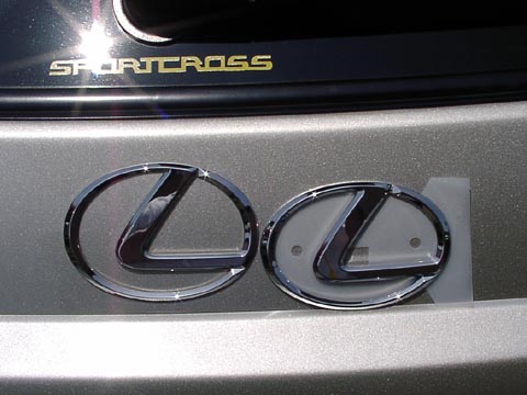 LEXUSエンブレム セダン用(下)とスポーツクロス用(上)の比較。 IS200エンブレム同様かなり大きさが違います。 |