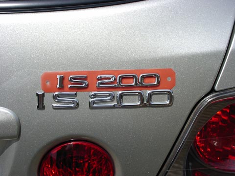 IS200エンブレム セダン用(下)とスポーツクロス用(上)の比較。 見た通りかなり大きさが違います。 |