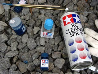 ブレーキ・キャリパーのとそうに使った物 タミヤ・アクリルカラー(メタリックブルー X−13) 10ml 定価120円(税別) タイガー模型価格100円(税別) x 3 タミヤ・エナメル塗料<溶剤>大ビン X−20 40ml 定価150円(税別) タイガー模型価格120円(税別) x 1 家にあった 筆 x 2本 タミヤRCクリーナースプレー 塗料ビン 軍手 |